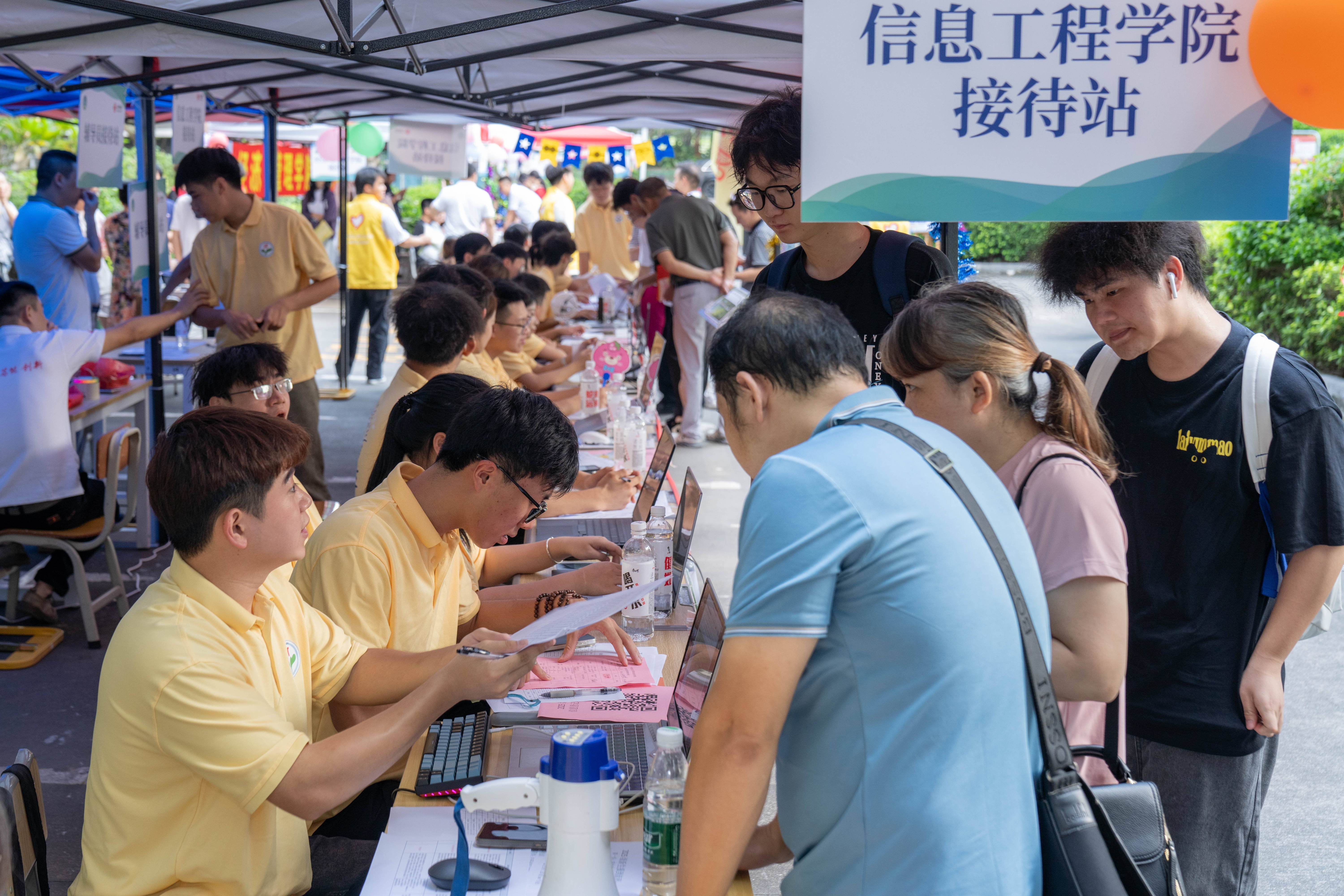 每一位新同学的到来都为校园增添了一抹“新”意。党委副通告、校长朱志坚,副校长马士杞、何曙辉,党委委员、副校长李中庆等校指导亲临迎新现场,详实了解迎新责任施展,与更生及家长亲切相易,宽宥他们加入广州当代信息工程作事时代学院的和善人人庭,并亲切慰问参与迎新责任的师生志愿者,迎新现场神思飘溢。出差在外的校党委通告朱灿焕相称治愈更生入学责任,屡次相干校指导了解更生入学报到的情况,并转达对更生和家长的请安以及对迎新责任主谈主员致力于付出的感谢。
