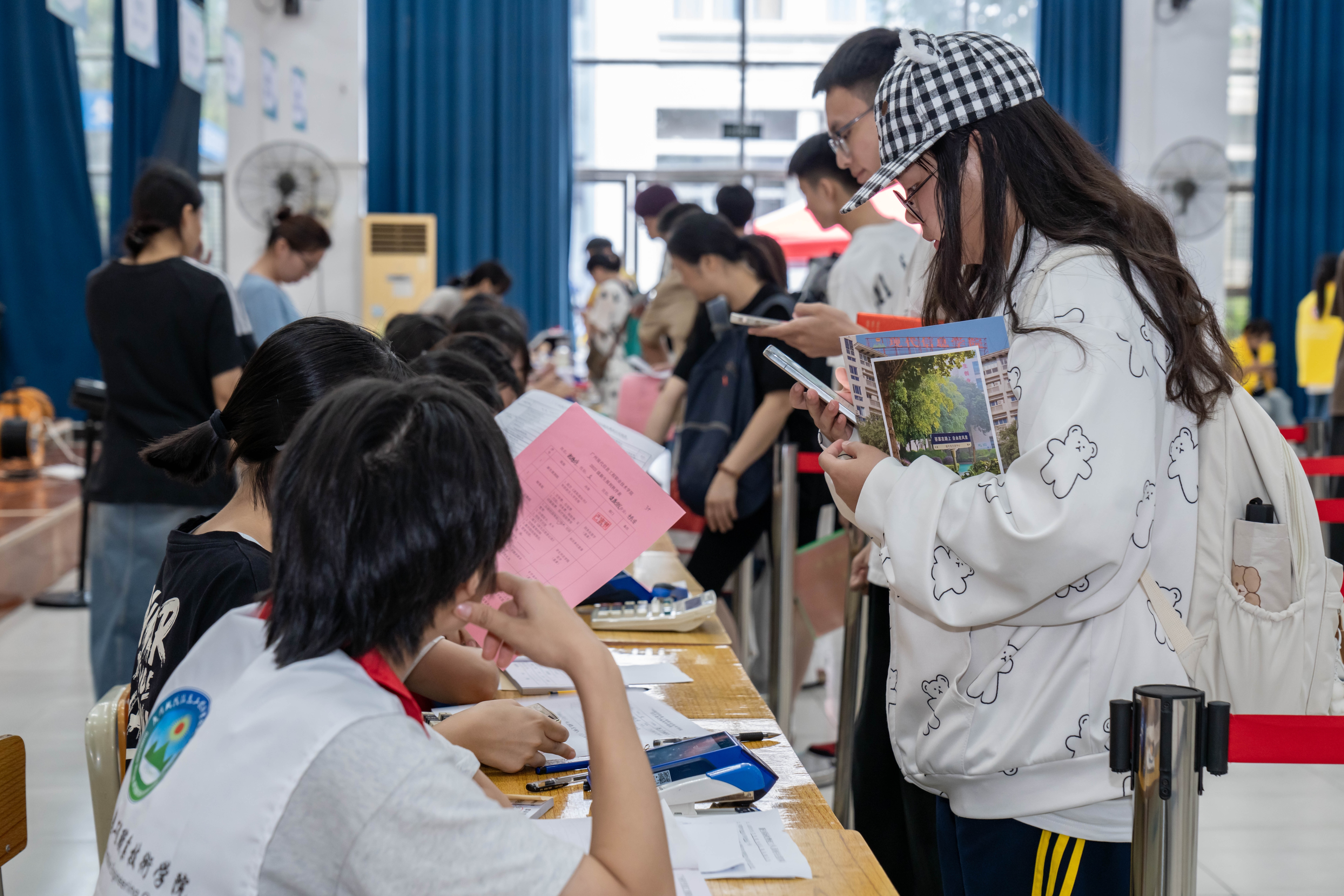 校园内,到处可见穿梭忙绿在现场的志愿者们,温馨的身影为校园增添了一抹别样的颜色。材料核验、线上注册、信息录入、现场讨论……志愿者们环环相扣地开展责任,他们为更生及家长指引场所、搬运转李、答疑解惑、忽闪教悔,充任起引路者、肩挑者、答疑者的职责。志愿者们以实质行径讲明了“奉献、友爱、互助、跳动”的志愿精神,为初入校园的小萌新奉上了第一份和善。