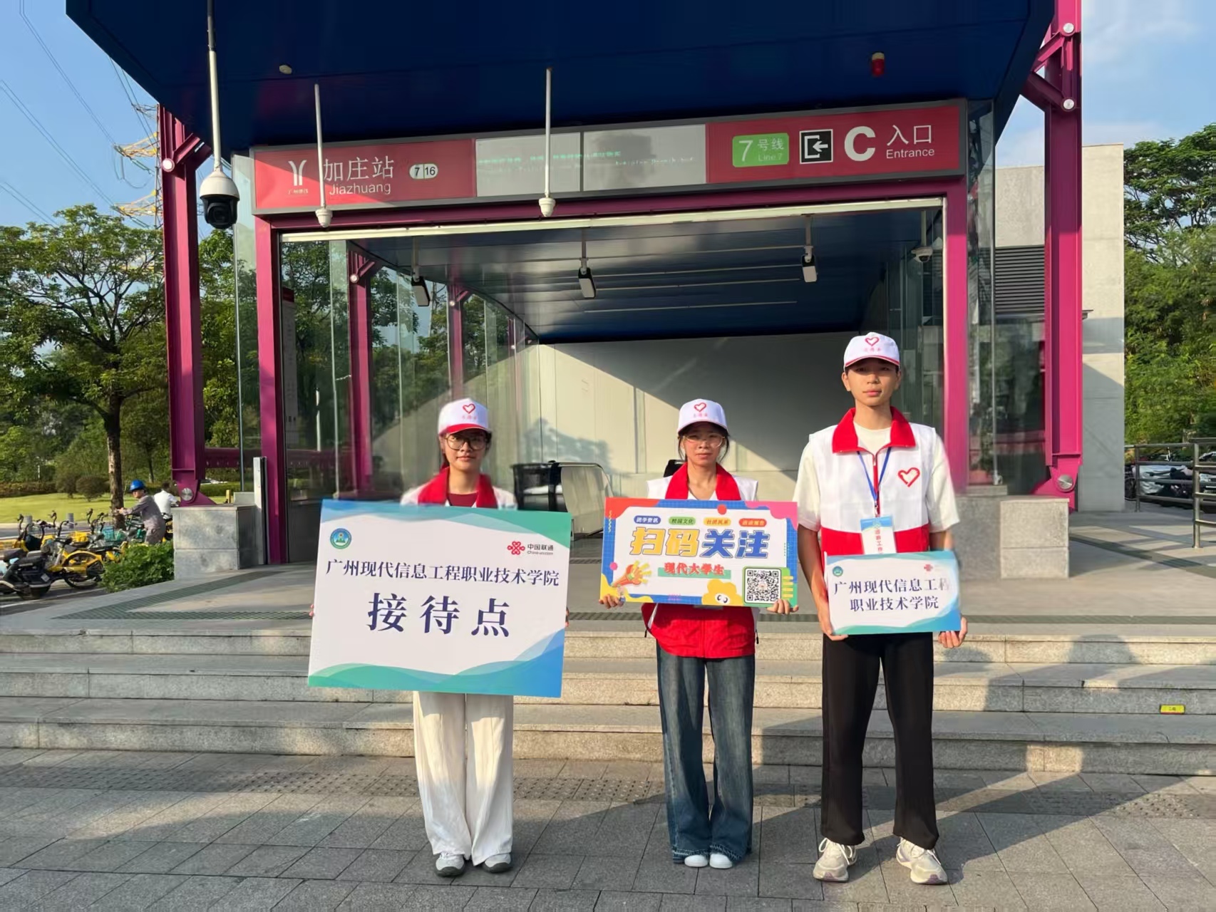 学校在四号线黄村地铁站、七号线加庄地铁站修复了接待点。9月6日上昼,迎着向阳,志愿者们身着长入服装从学校开拔,带着满满的神思奔赴接待点,为萌新们提供行李搬运、谈路指引、信息讨论等贴心惬意的接站就业。