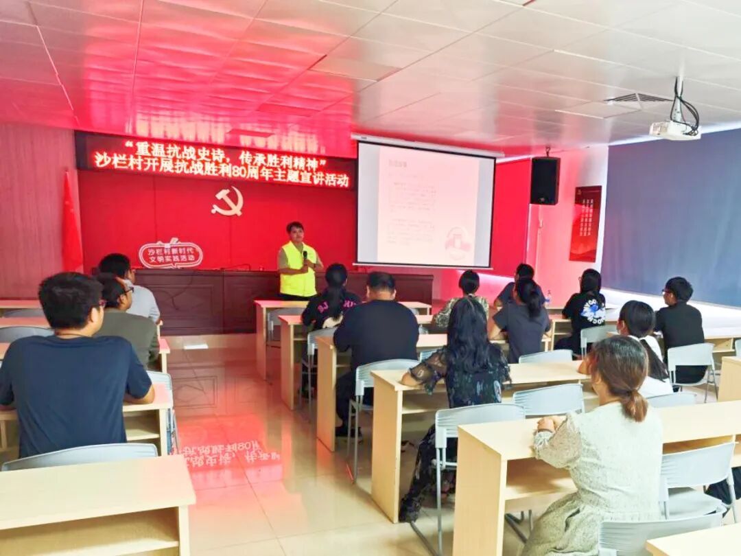 沙栏村新期间精致试验站组织开展“重温抗战史诗 传承得手精神”主题宣讲行为,通过讲授红色故事、总结历史回顾,让村民在鲜美的叙事中感悟初心,凝合奋进力量。