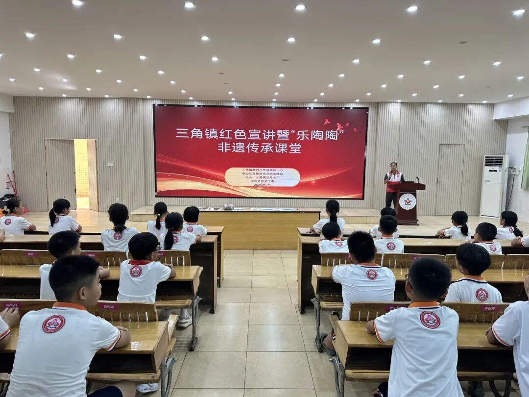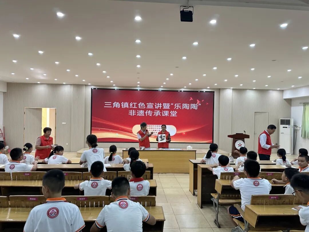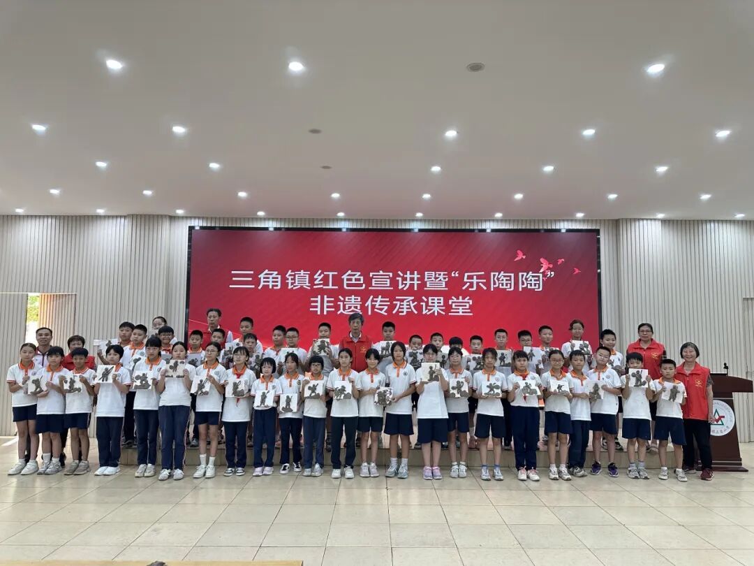 三角镇新期间精致试验中心承接中心社区新期间精致试验站走进三角小学开展红色宣讲暨“喜洋洋”非遗传承课堂进学校行为,通过“忆袼褙奇迹+陶泥手工体验”的花式,让青少年在千里浸式学习中感受非遗魔力、传承红色基因。